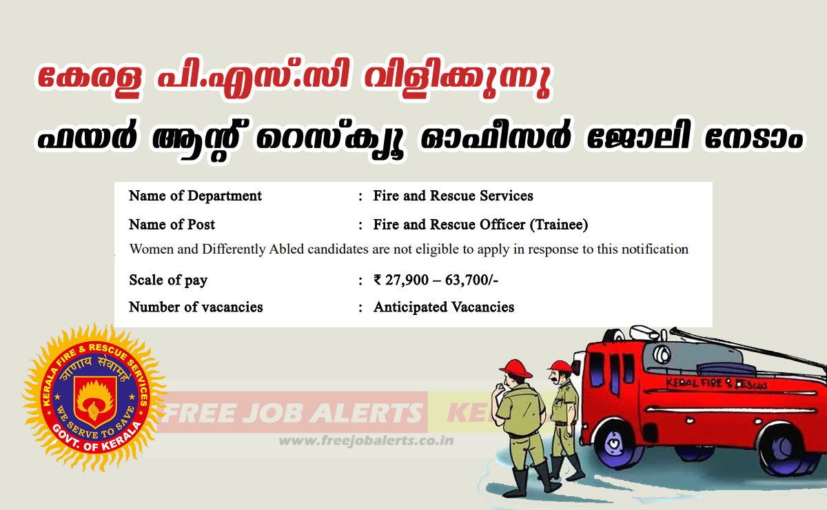 കേരള പി.എസ്.സി വിളിക്കുന്നു – ഫയർ ആന്റ് റെസ്ക്യൂ ഓഫീസർ ജോലി നേടാം