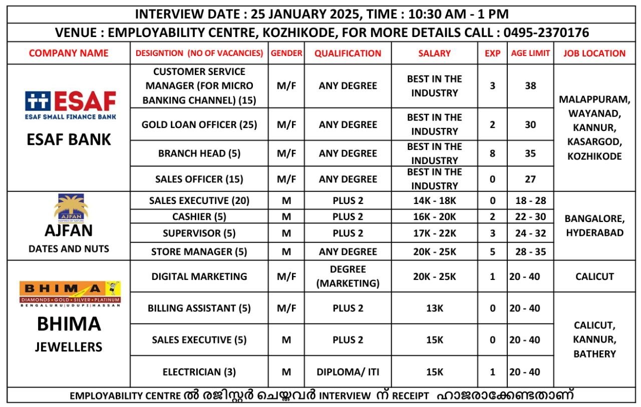 Job Fair Alert! ESAF Bank and More Hiring at Kozhikode’s Employability...