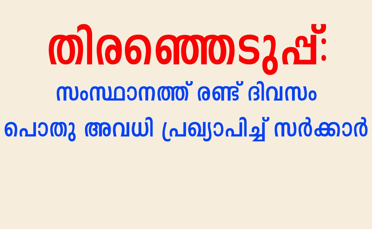 തിരഞ്ഞെടുപ്പ്: സംസ്ഥാനത്ത് രണ്ട് ദിവസം പൊതു അവധി പ്രഖ്യാപിച്ച് സർക്കാർ