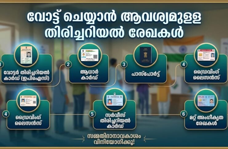 വോട്ട് ചെയ്യാന് ആവശ്യമുളള തിരിച്ചറിയല് രേഖകള് ഇവയാണ്